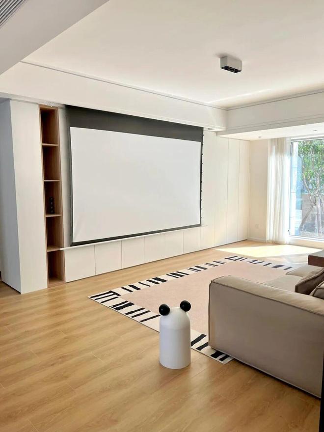 所以,与其为了偶尔的需求装一台鸡肋的投影,还不如把省下的钱,设计一组更实用的满墙电视柜。