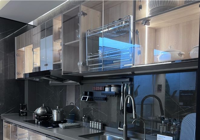 智能生态厨房,指的是安装具有智能功能的烟灶联动系统。还有就是厨房可以安装专用的空调或者凉霸,甚至还可以安装上智能的空气管家。
