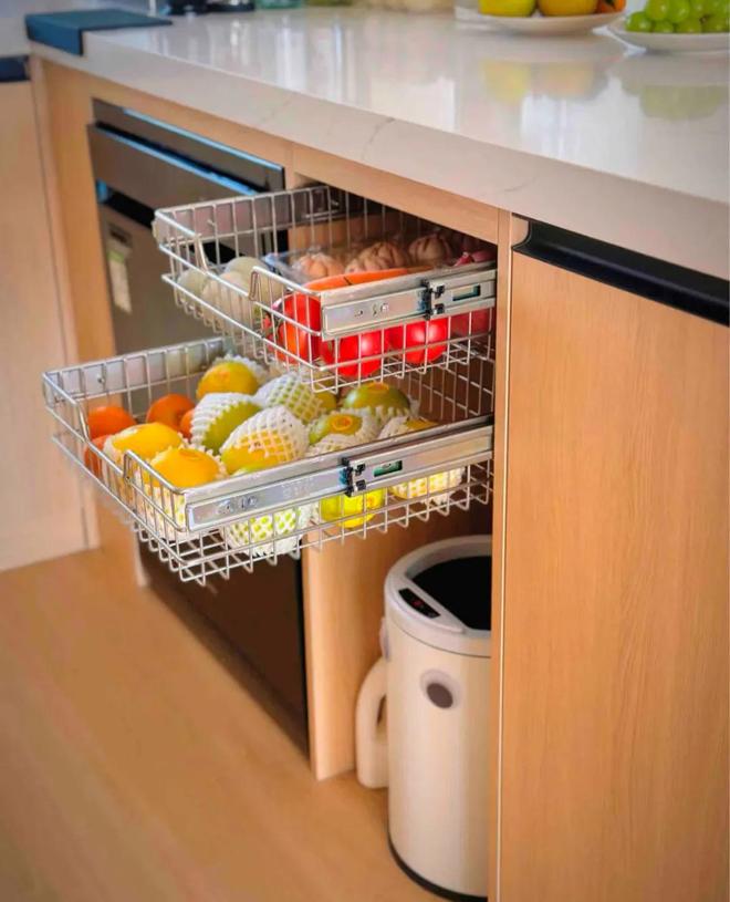 像这样10-25cm的狭窄空间薄柜,可收纳瓶罐、干货、厨房工具等,不占过道空间,却极大提升厨房收纳容量。