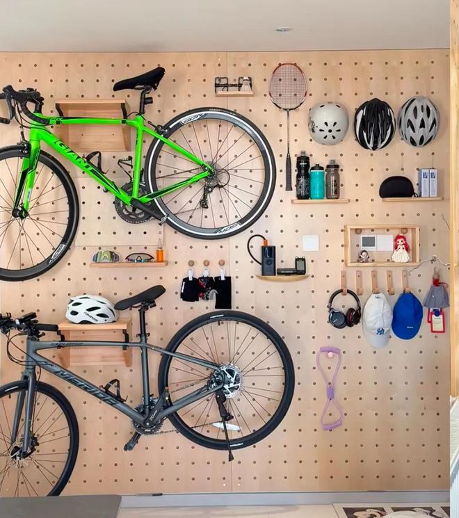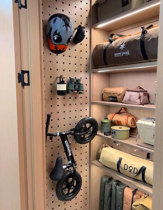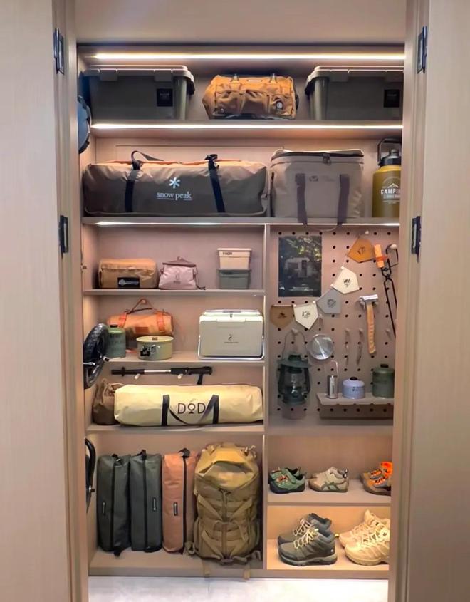其实,如果条件允许的话,直接做出一个运动和露营装备柜的话,这些装备就不会乱了。