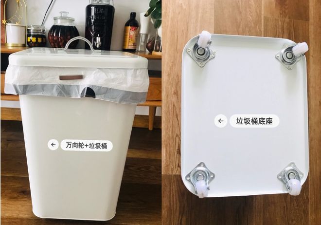 说完了自带万向轮的,再说几个建议安装万向轮的,没错,这垃圾桶就是其一,我家这阵子减少了很多垃圾桶,只保留下一两个大号的,底部装万向轮可以随时移动,比如客厅餐厅共用一个,自然也省去了倒垃圾和套袋子的麻烦。