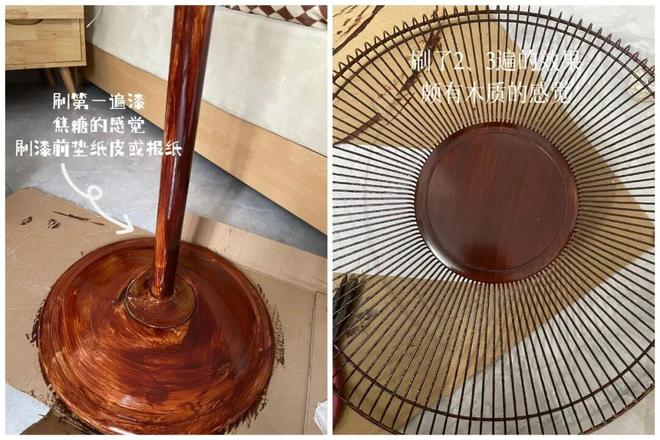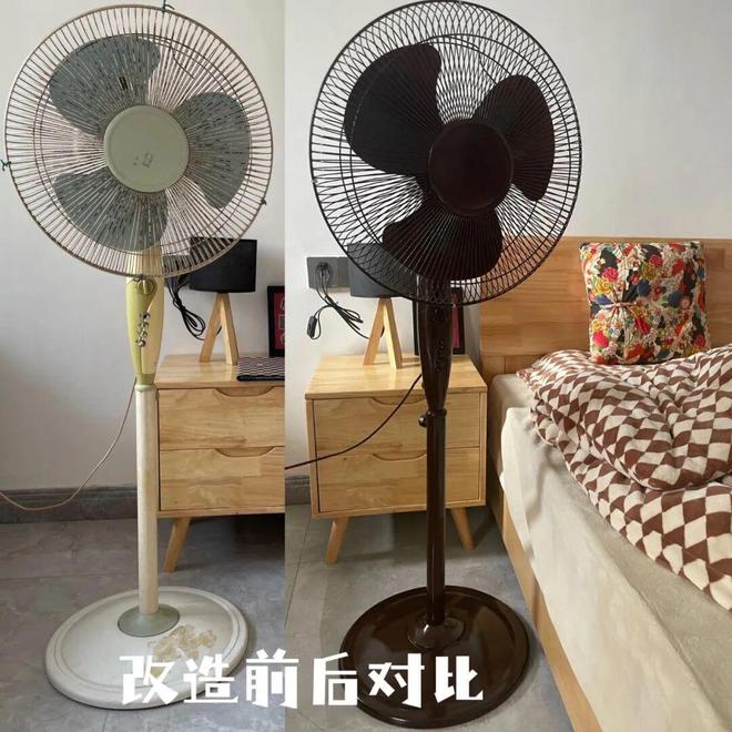 将风扇零部件拆下来清洗干净,直接网购水性木器漆开刷就行,差不多3遍之后就能看出质感和效果了。