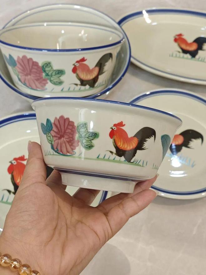 比如这只公鸡碗,在七八十年代,算是再普通不过的日常物件了。如今再看,却多了一种说不出的亲切与温度。