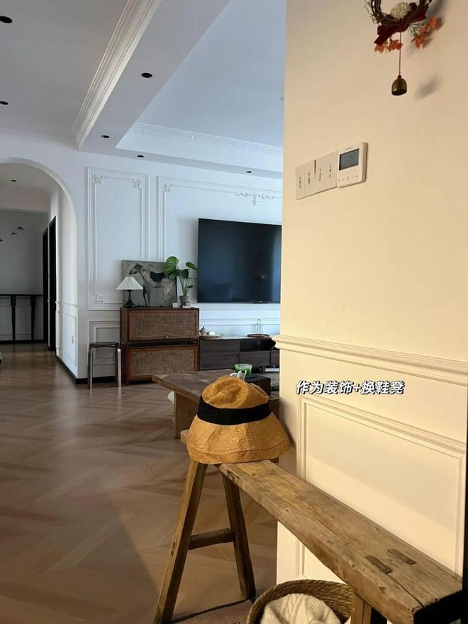 长凳放在玄关处,作为装饰品,它可以与整个空间气质自然融合;作为换鞋凳,它又承载了日常。