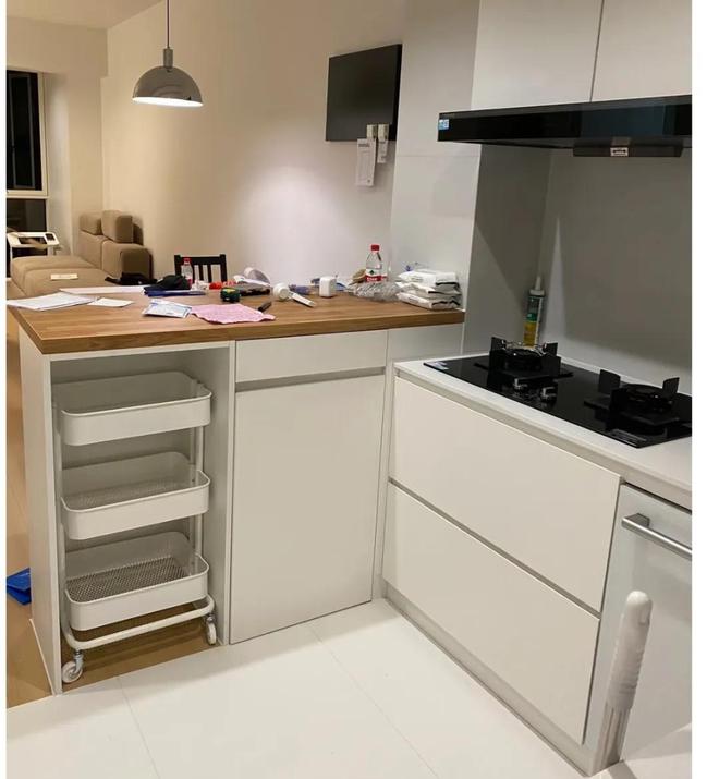 很多人家里的厨房有一个公共烟道,其厚度已经超过60公分了,将原本能连起来的橱柜给分隔开了。