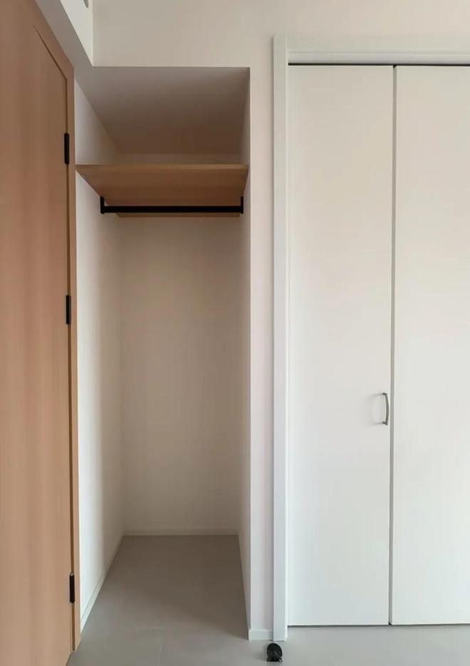 其实,只需要在做衣柜时,预留出一个空间,作为次净衣柜来使用就行。