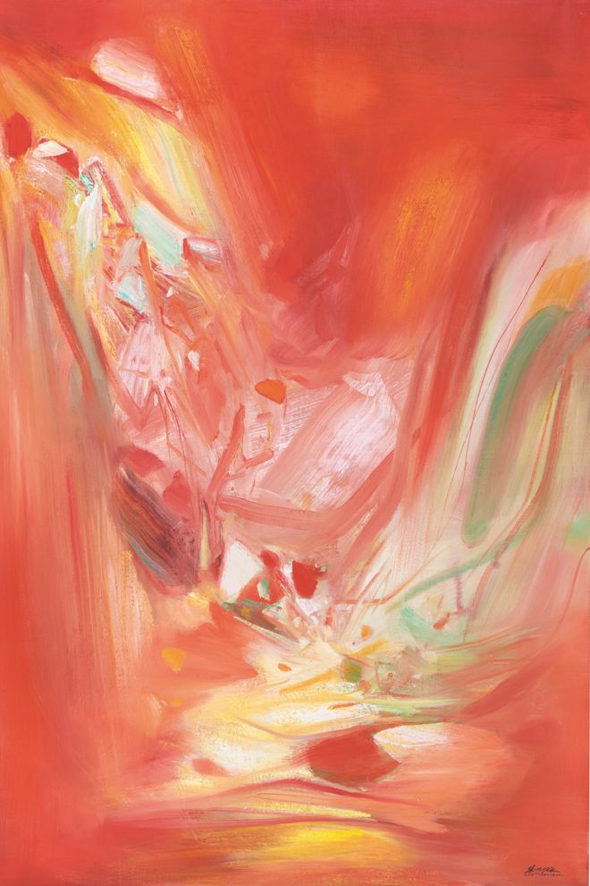 杨喆:作为以“意象建筑论”为核心的设计实践者,我更关注那些能在物质媒介中传递东方精神的作品。朱德群的《532#》,以西方油画形式承载中式山水内核,在热烈铺陈的色彩中,冷色与暗色隐约浮现。流畅柔和的笔触与留白形成张力,勾勒出近乎险峻的空间感,也延续了中国画的逻辑。