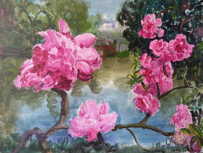 Tommy Yu:我期待那些能将自然意象转化为精神符号的作品。如周春芽的《瘦西湖春意图》,以近乎夸张的玫红铺陈,与背景的湖绿形成强烈冷暖对比,桃花不再是自然景物,而被赋予了强烈生命力的情感符号。