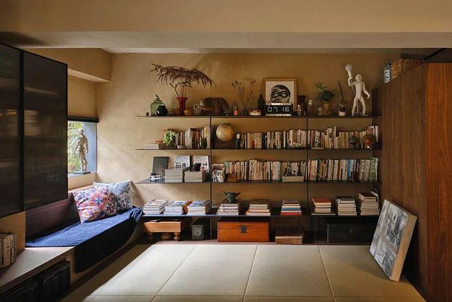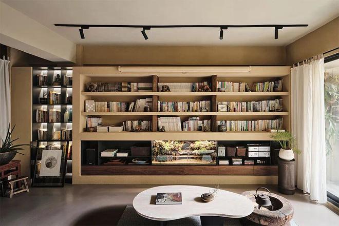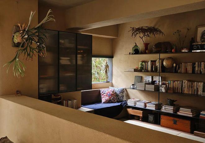 内嵌在土墙里的客厅壁橱书柜