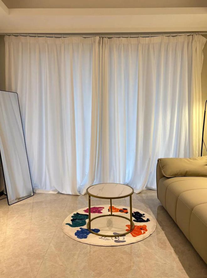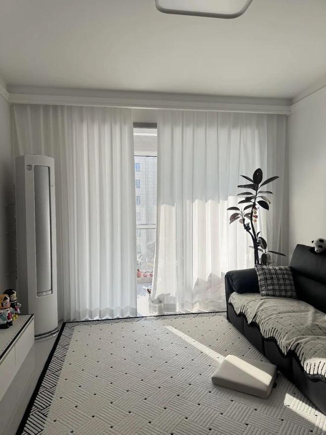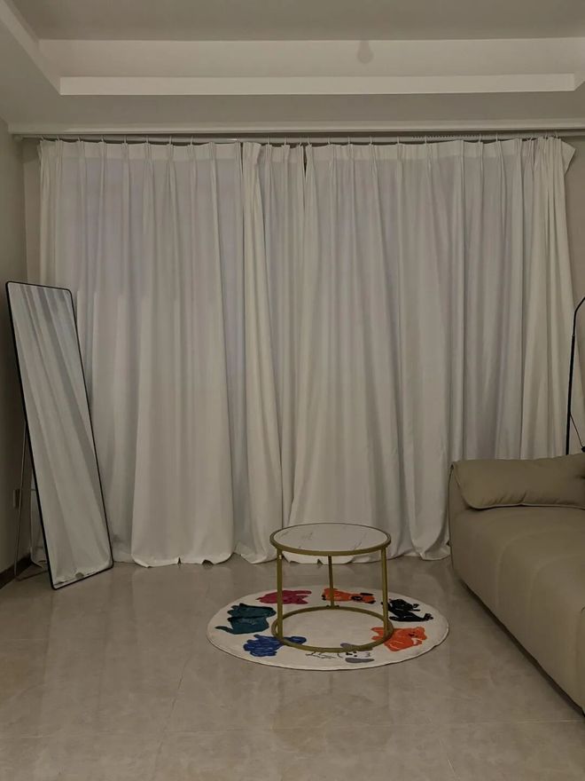 Tips:白色纱帘一定要做高温定型,而且不能拖地。如果拿捏不好,还是选择其它颜色的窗帘吧。