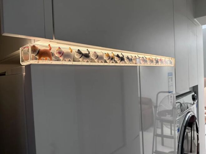 至于侧面缝隙问题,可以参考下图解决方案。用亚克力盒子+灯带+小装饰品来弱化缝隙的存在感。
