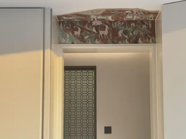 例如横梁位置,在保证高度的前提下,并没有完全封闭,而是通过手绘进行转化,以敦煌九色鹿为主题,让结构本身成为视觉的一部分;