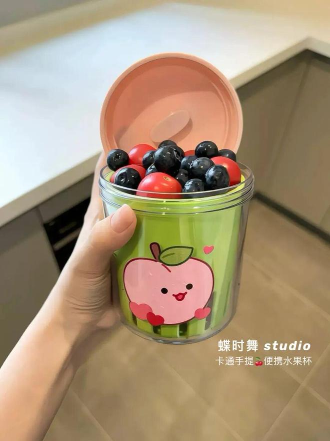 ♀️推荐理由:在路上吃这个水果杯,被人追着要链接!双层设计,底下沥水,上面装水果,再也不用担心草莓泡在水里变得软趴趴。自带一个小叉子,吃完手还是干净的,特别适合带出门——上班、上学、旅游、野餐,塞包里就行。
