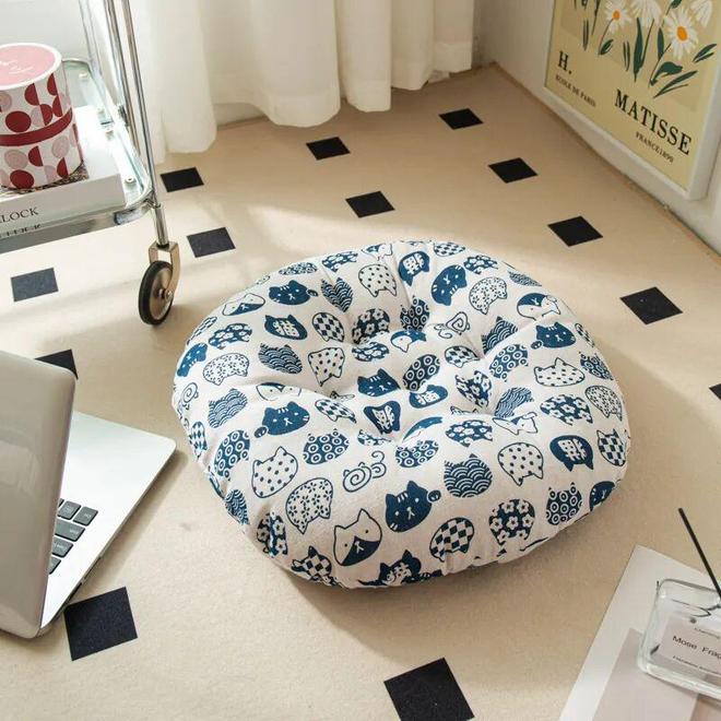 重点是它不挑地方——餐椅上、飘窗上、地板上、茶几边,随便扔哪都能坐。