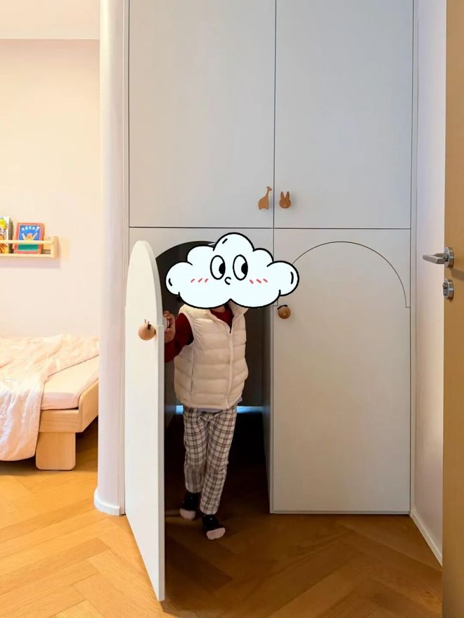 2)家里有两个娃,可以在衣柜里开一个任意门,让两个房间互通,两个孩子也有了自己的秘密基地。
