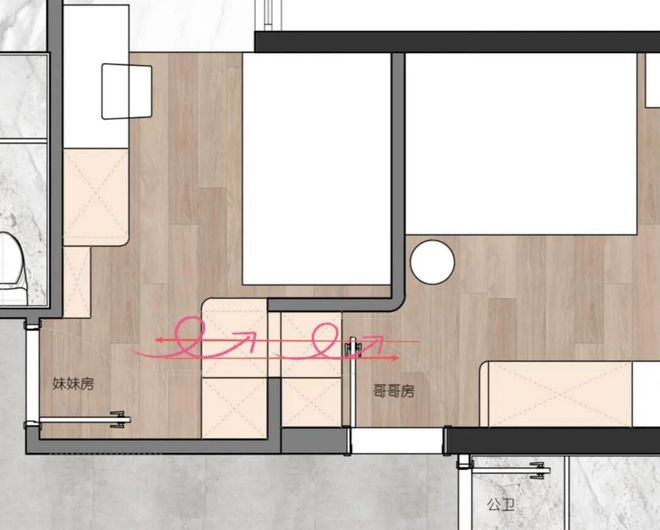 1)在主卧和儿童房之间开个小门,不仅方便了大人观察孩子,也让孩子可以快速找到妈妈,安全感满满。