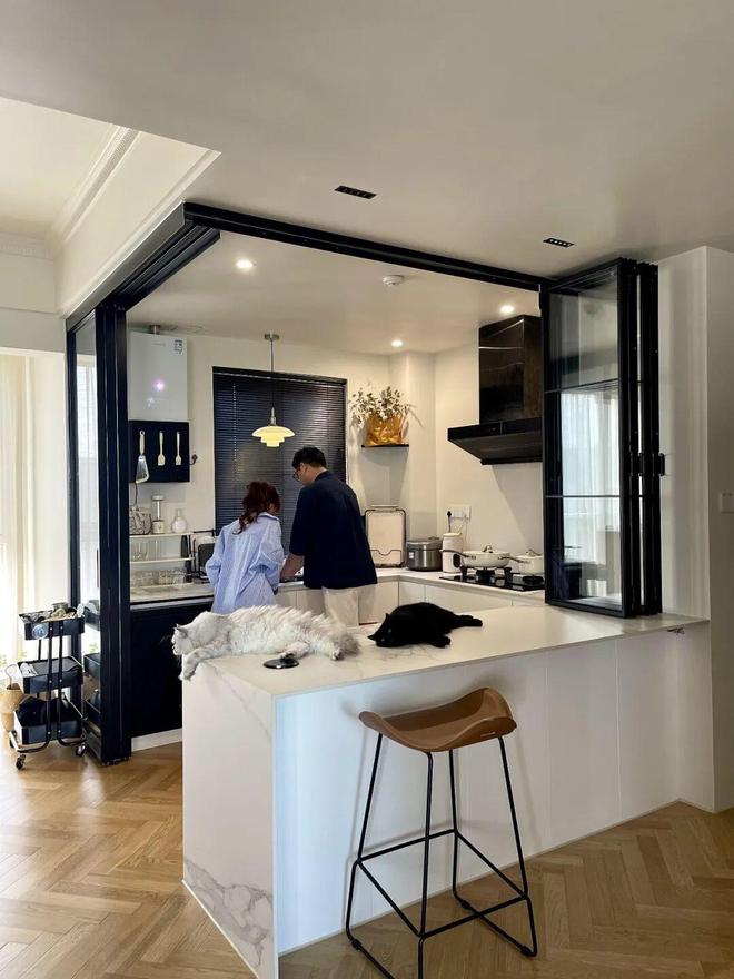 开放式厨房固然很爽,但若无法实现也不用太悲观,只需要换个思路,同样可以让空间串联起来。