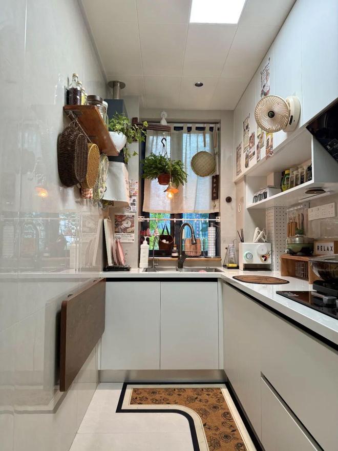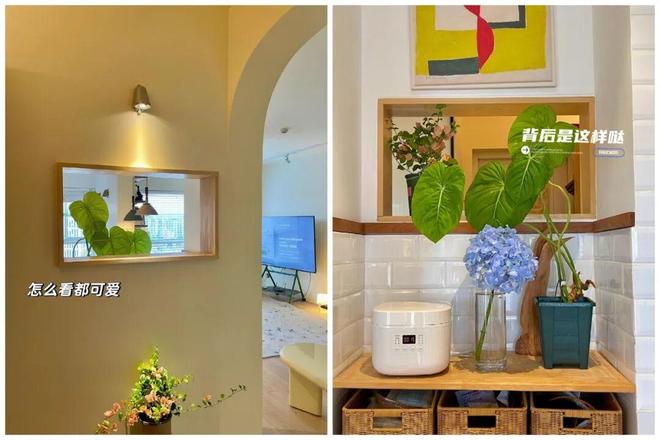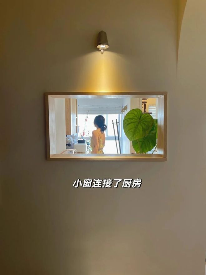 2)在厨房和玄关之间的墙体处开个小窗,再放一盆绿植,整个空间都活了起来,而且进门自带窗景,满满的烟火气。