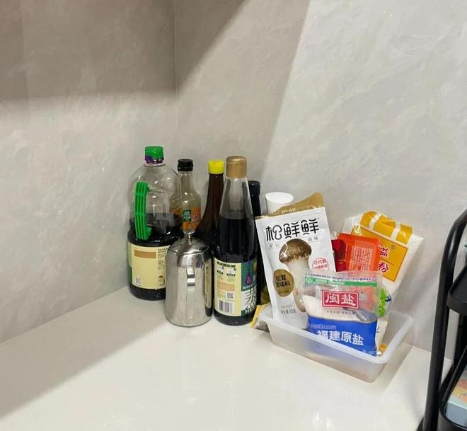 中年阿姨的做法:直接用调料原包装,只要摆放整齐就不会乱,用完就扔,比分装干净卫生多了,而且还特别省心。