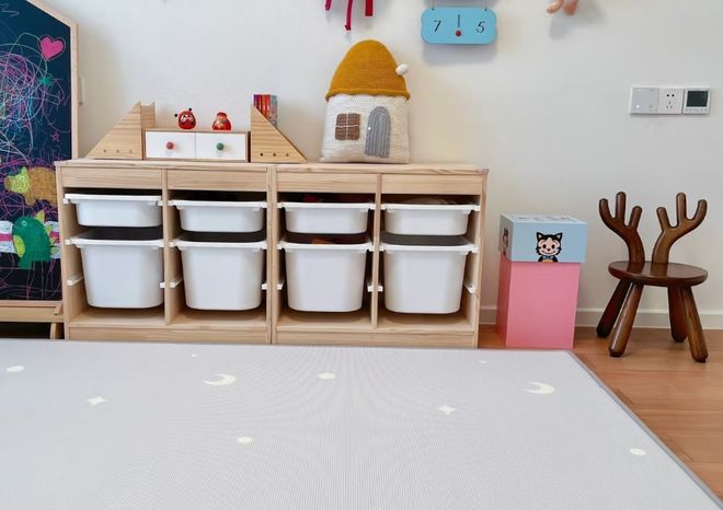 最重要的一点就是收纳要低矮化,像孩子的玩具绘本的收纳柜高度控制在孩子伸手可及的范围内,这样做是可以培养孩子自主收纳习惯的。
