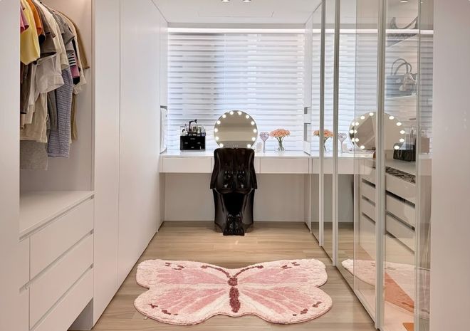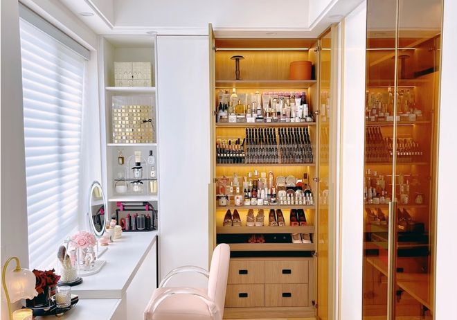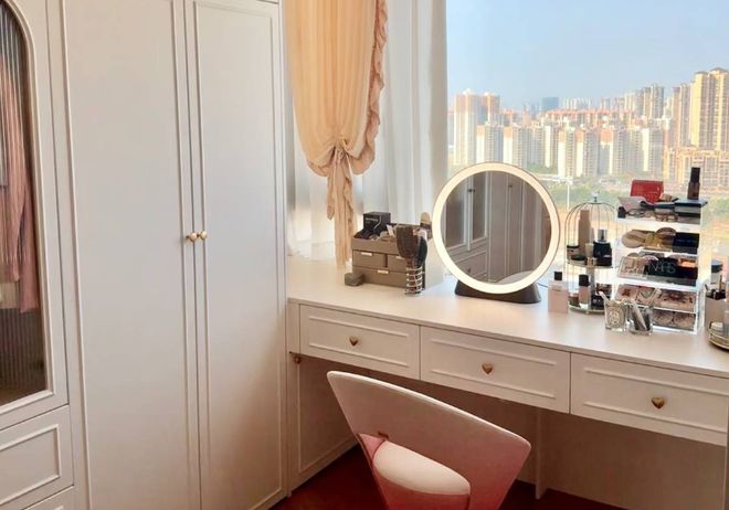 而梳妆台和衣帽间结合,换衣化妆动线最短,出门效率也会翻倍。