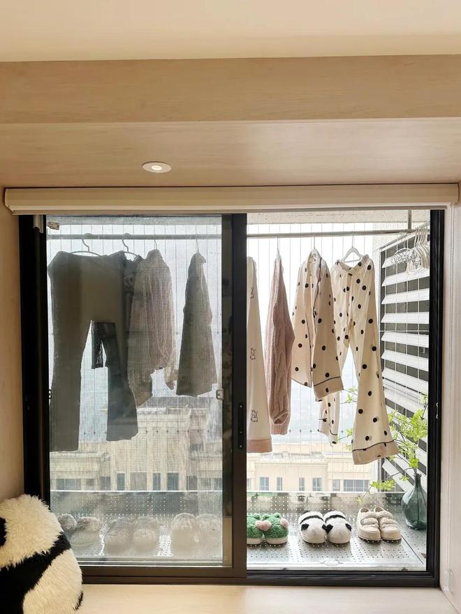 最后就是窗帘,拉上之后,外面的晾衣区就藏起来了,谁也看不出窗外还有这么个好地方。