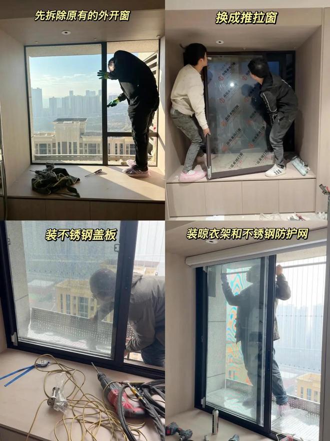 如果原有的窗户是平开窗的话,先要将改造成推拉窗,这样才方便晒衣服。