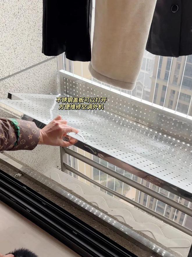 此时,多余出来的空调外机平台就是晾晒衣服的绝佳位置。