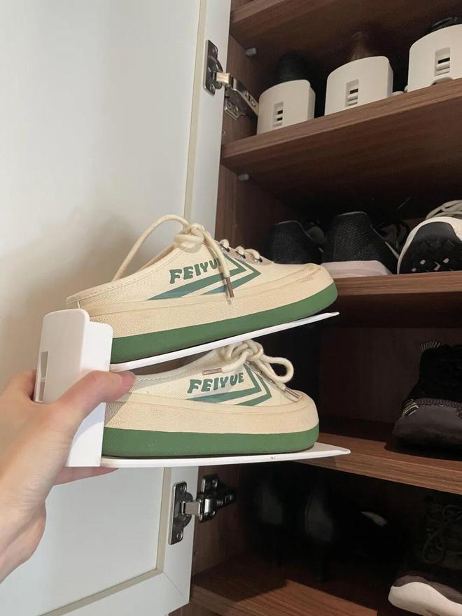 鞋柜隔层做高了,空间太浪费怎么办?最常见的做法,就是购买鞋子收纳神器,提升鞋柜的收纳力。