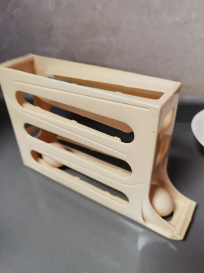 下图中的这个鸡蛋滚蛋器,应该不少人都买过吧。看着十分好用,既能收纳鸡蛋,拿取的时候也会自动滚下来。