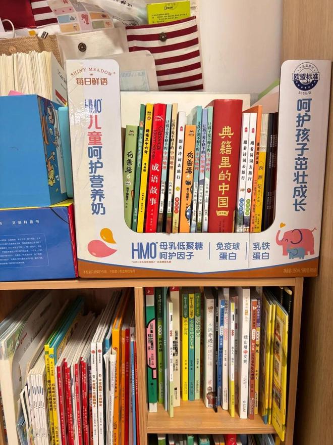 另外,牛奶箱还可以代替书立,只需要根据柜内尺寸裁剪一下,再剪一个U形面即可。
