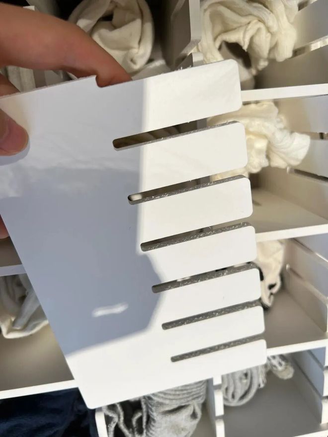 说实话,这种分隔板非常容易踩雷。最典型的问题,就是裁切完之后,边缘处特别粗糙,甚至还可以会刮到手。