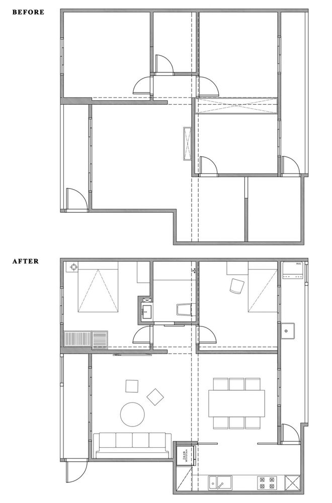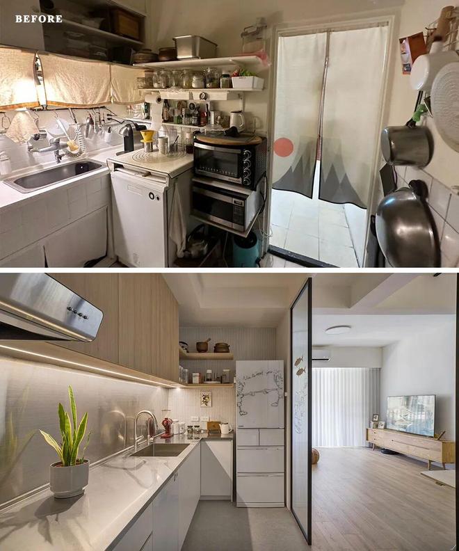重新梳理这幢50年老公寓的格局,果断卸下一道墙,将封闭的小房间转化为空旷的餐饮核心,还拓宽了厨房尺度,把客、餐、厨房从此如流水般串连,公共空间一气呵成,既通透又利落,在公私领域之间,划下了一道清楚而优雅的分界,不杂乱、不压抑。