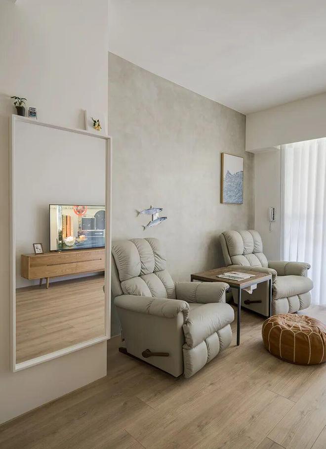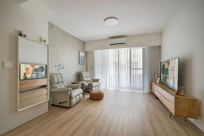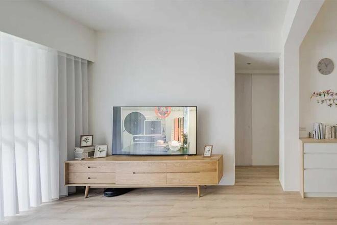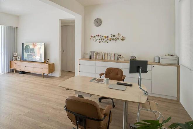 摒弃死板的固定木作,改采活动式电视柜的布局,不浪费一点空间,还让空间留下了可以随心调整的余裕,完美呼应屋主向往“简单、不腻”的居住初心,让生活能在岁月中自由流淌,打扫起来也省心。