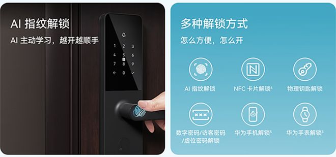 实际上,华为智能门锁M2是一款入门级的一握开智能门锁产品。支持指纹、NFC、钥匙、华为手环、华为手机等多种解锁方式,主要解决的就是不想携带钥匙出门的繁琐。