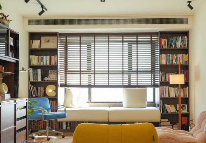 装修建议:飘窗卡座设计的关键是高度比例。飘窗原始高度一般在40~55厘米左右,这个高度再加上坐垫以后,刚好是舒适的坐高45~50厘米。如果原始飘窗太高或太低,需要通过加垫或者升降坐垫来调节。