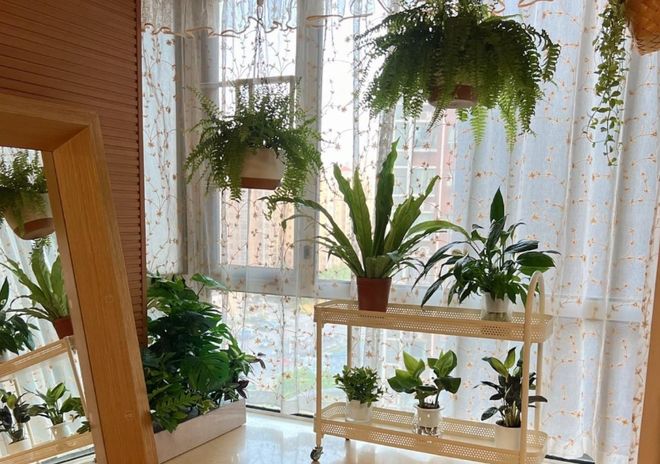 做法建议:飘窗养绿植一定要根据不同的区域来选择。南向的飘窗,光照很充足,适合养一些月季、茉莉等非常喜光的植物;而北向的飘窗光照比较弱,适合养殖龟背竹,蕨类,绿萝等耐阴类的植物。