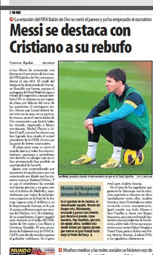 日前,足坛最高荣誉金球奖的23人候选名单已经公布,投票工作也已开始。今日,加泰罗尼亚的《世界体育报》曝出,梅西已在评选中大幅领先于C罗,有望连续第4年赢得金球奖。