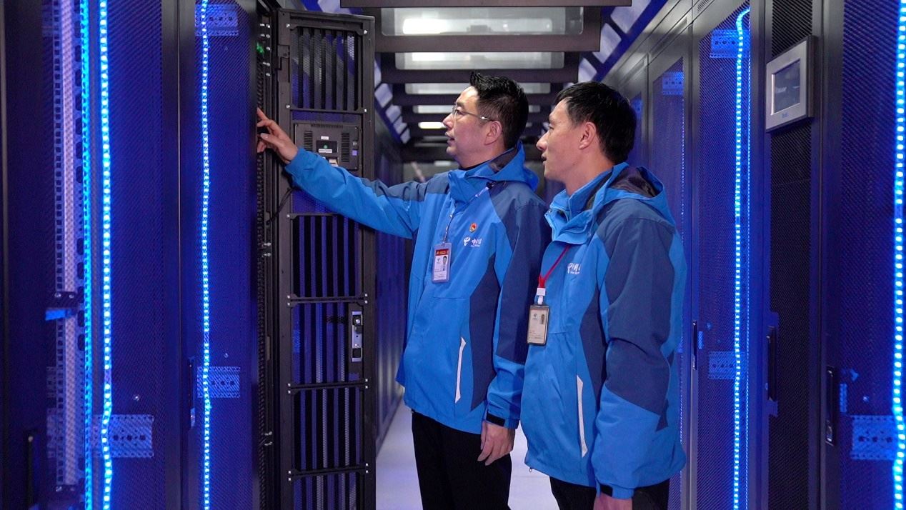(第十四届全国人大代表、中国电信江西抚州分公司云网运营支撑中心“宗强班”班长宗强(左1)正在检测云平台运行情况)