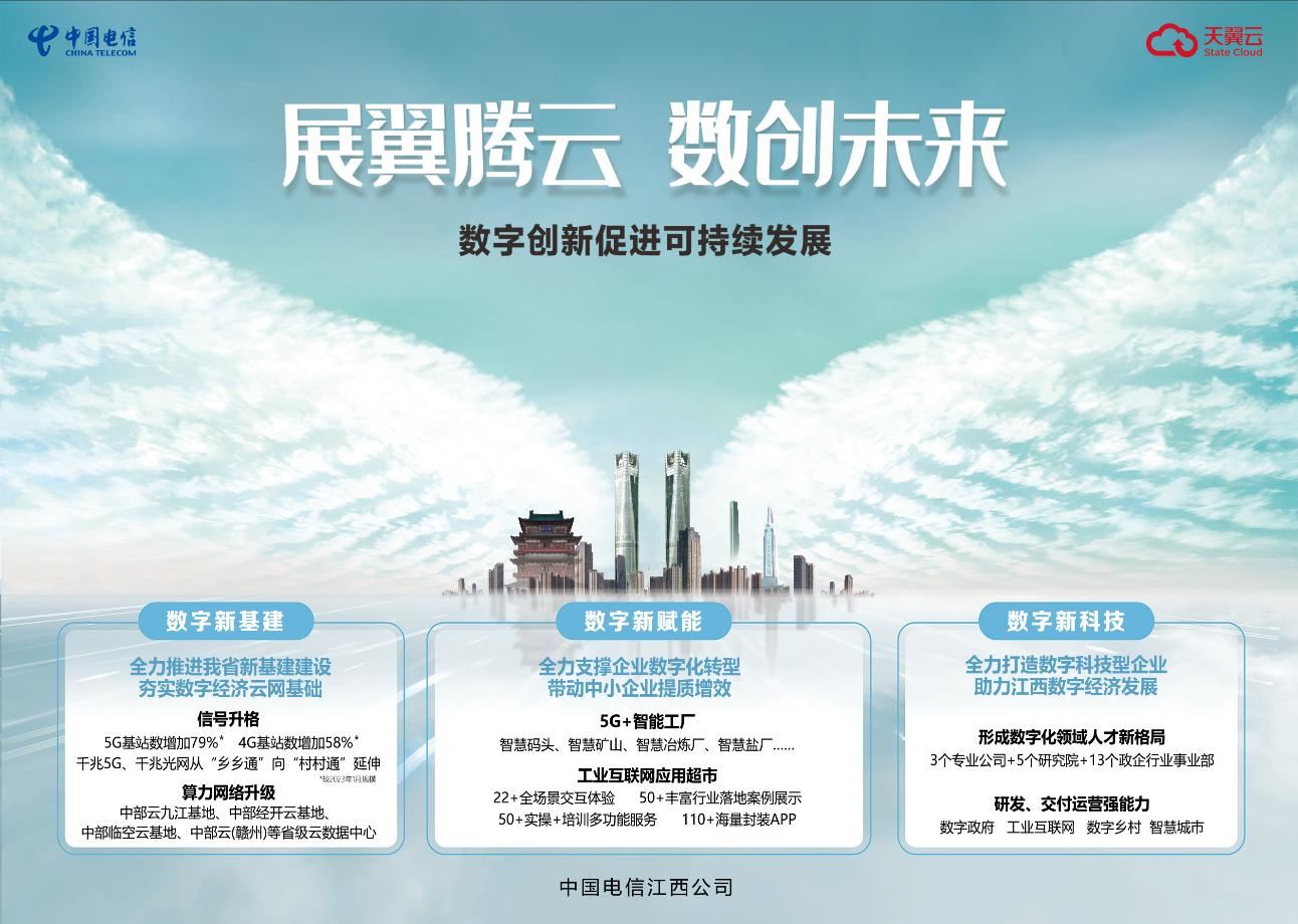 作为建设“网络强国”“数字中国”和维护网信安全的国家队、主力军,中国电信江西公司锐意进取、深化改革,不断强化科技自主创新,加快新型数字基础设施建设,赋能新质生产力;依托云网融合优势,通过 5G、智能算力、人工智能等数字技术创新应用,融入中心、服务大局,紧紧围绕江西省委打造“三大高地”、实施“五大战略”,进一步落实“1269”行动计划,以数智化推动新型工业化,在江西这片红土圣地阔步前行,为奋力谱写中国式现代化江西篇章贡献力量。