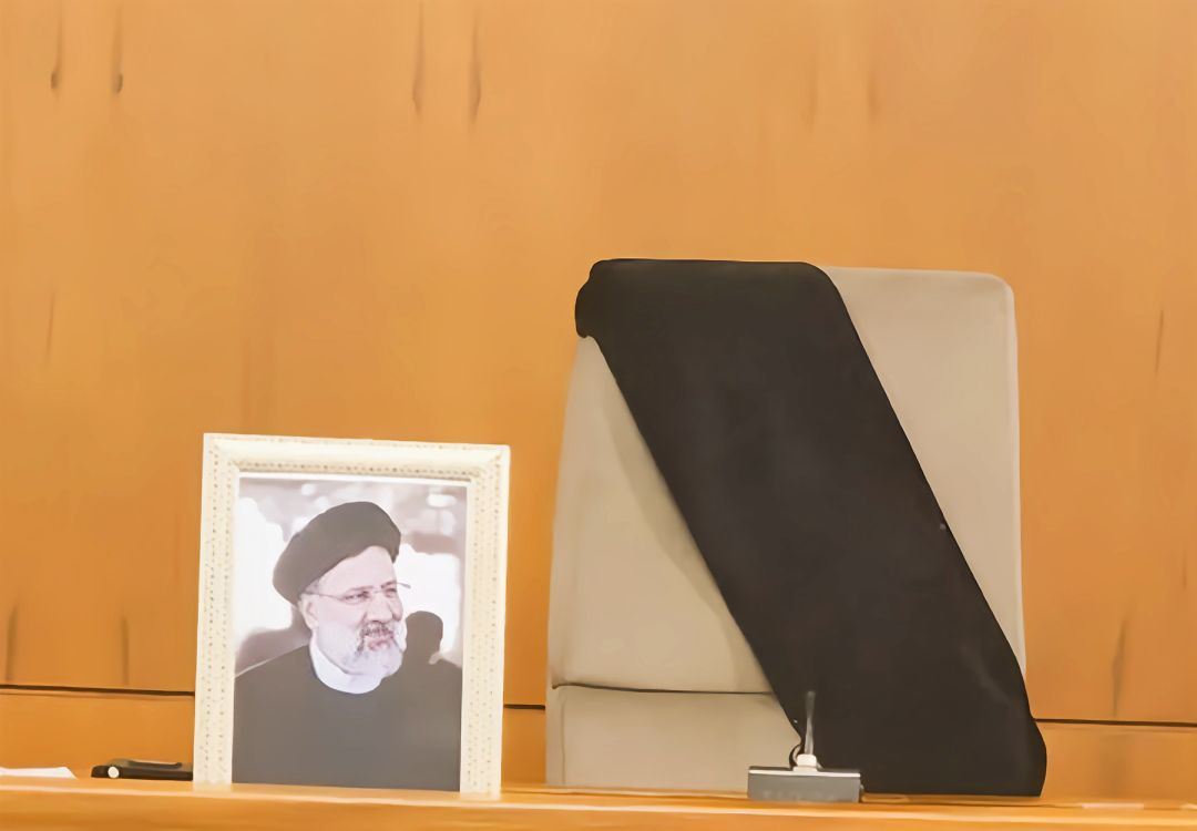 5月20日,代行伊朗总统职责的穆罕默德·穆赫贝尔首次主持了内阁会议。人们注意到,在刚刚因直升机事故遇难的伊朗总统莱希的座位上,放着一条黑色的绶带。全场气氛庄严肃穆。