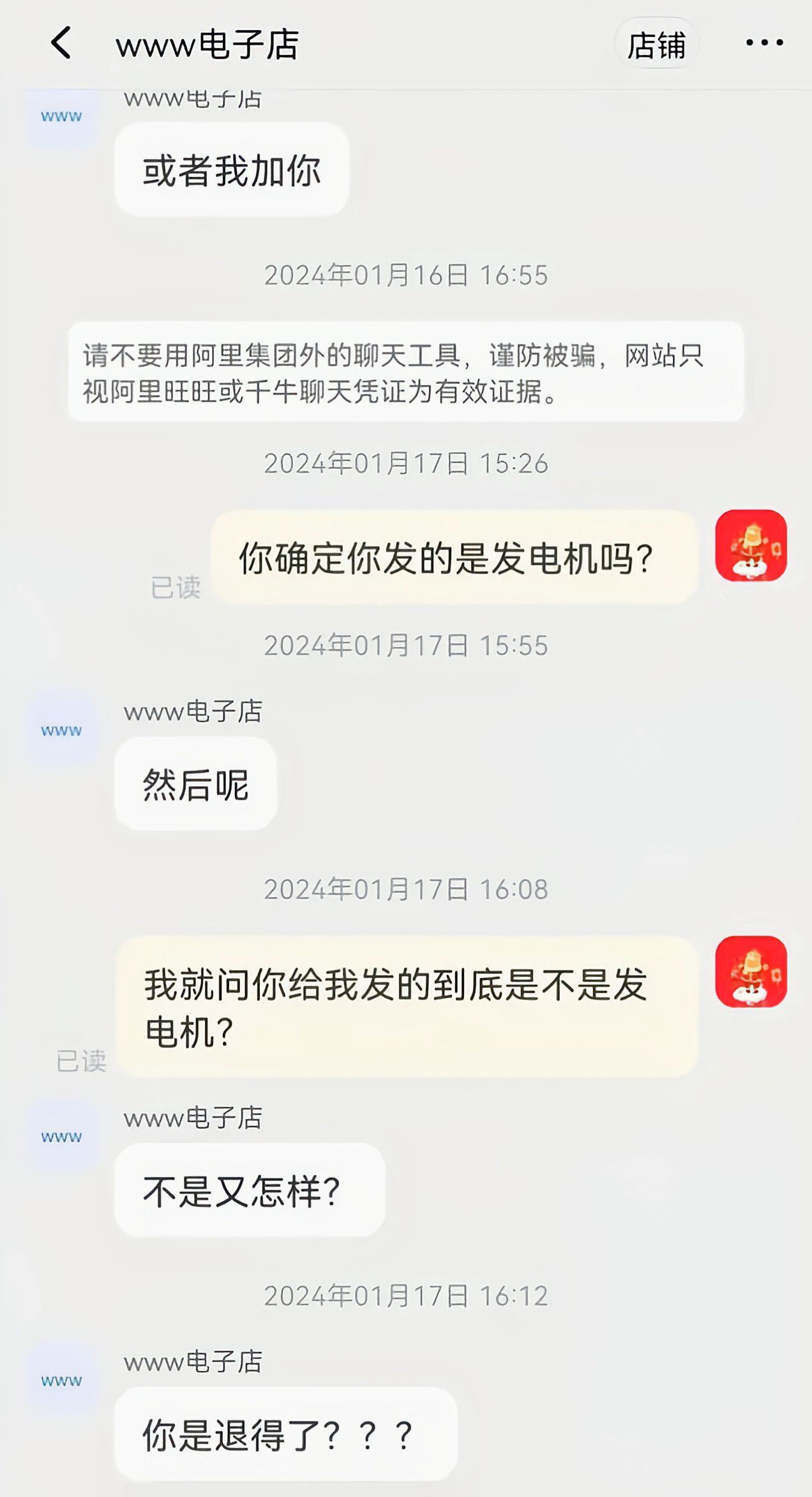 卖家将赠品物流信息提交平台重庆的李女士也有类似的遭遇,她从一个家电店铺花一万八千元买了几种家电。商家称为表示感谢,先送她一个小礼品,结果却将礼品物流信息当作电器物流信息提交平台。等不到电器的李女士发现店铺已经关闭,钱也要不回来,而这家店铺的保证金只有500元。意识到被骗的李女士向平台求助,但淘宝客服表示,这种商家已经跑路了,他们也找不到。卖家将他人货物信息填入物流湖南株洲的刘先生买了两台家用发电机,在下单当天就发现了物流有问题。刘先生立即向客服举报,但一直没有收到货,也没拿回退款。刘先生说:“我联系了淘宝平台要求介入,提交了申请退款,我也联系了EMS确认了收货人的地址和名字电话都不是我的。我是4月13日下午1点下的单,物流显示是4月12日晚上7点开始运输了。”一个月以来,刘先生甚至无法从淘宝方面得到卖家的信息,更无从通过法律途径追回钱款。卖家故意错发货 顶替价值高的物品陕西西安的李女士花3400多元在淘宝下单了家用发电机,却只收到了一个香包。李女士曾和店主沟通,对方声称店铺资金被限制,需要李女士再转一笔钱解除限制,否则无法退款。