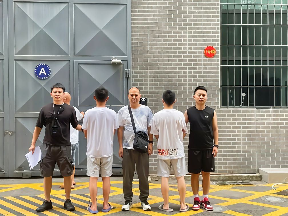 2023年6月,专案组民警(左一、左三、右一)将两名归案的犯罪嫌疑人送往雅安市看守所羁押。 (雅安市公安局供图)