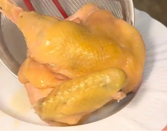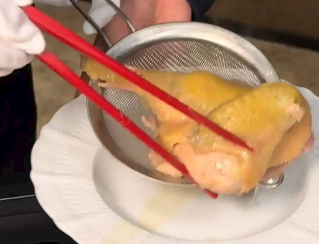 其强调,这道菜不仅包括养殖365天的清远鸡,更主要的是使用了“9寸金钩翅”,而鱼翅是成本的主要部分。此外,配套的翅汤以龙骨、猪脚、凤爪、猪皮等材料熬制6小时以上,“富含胶原蛋白”。
