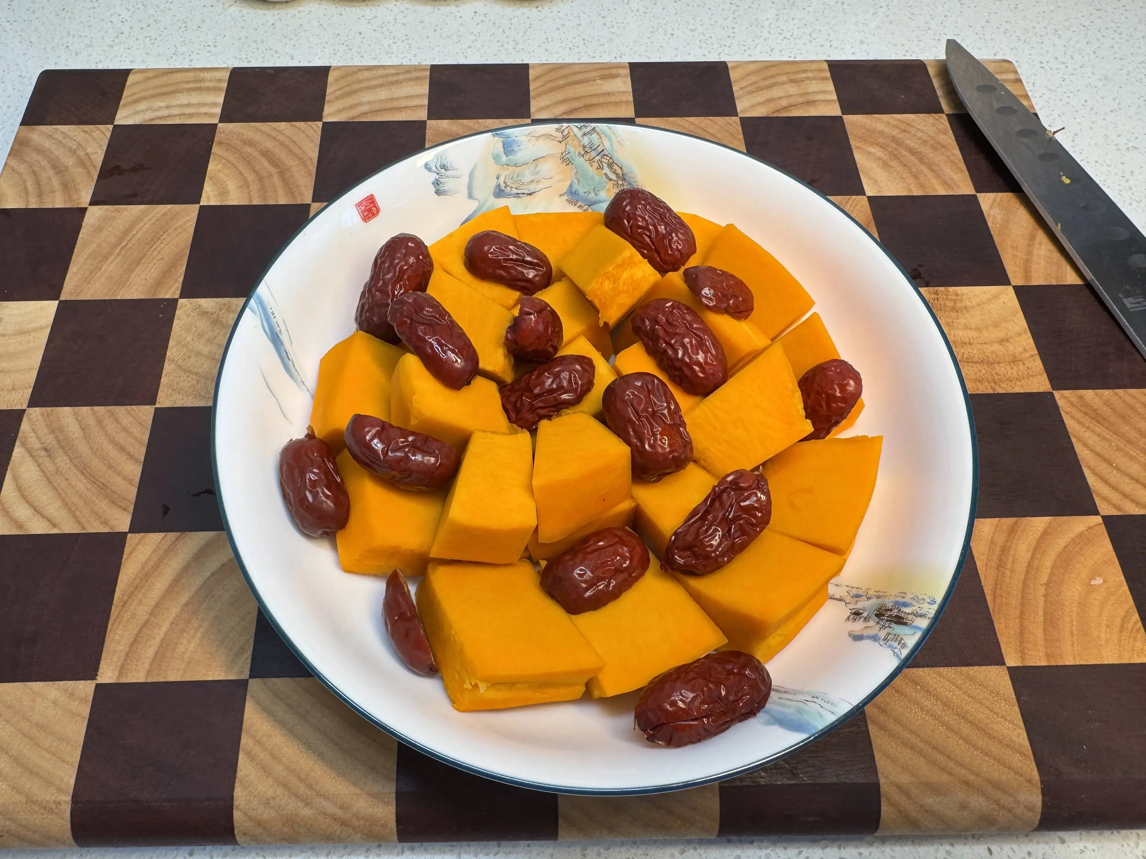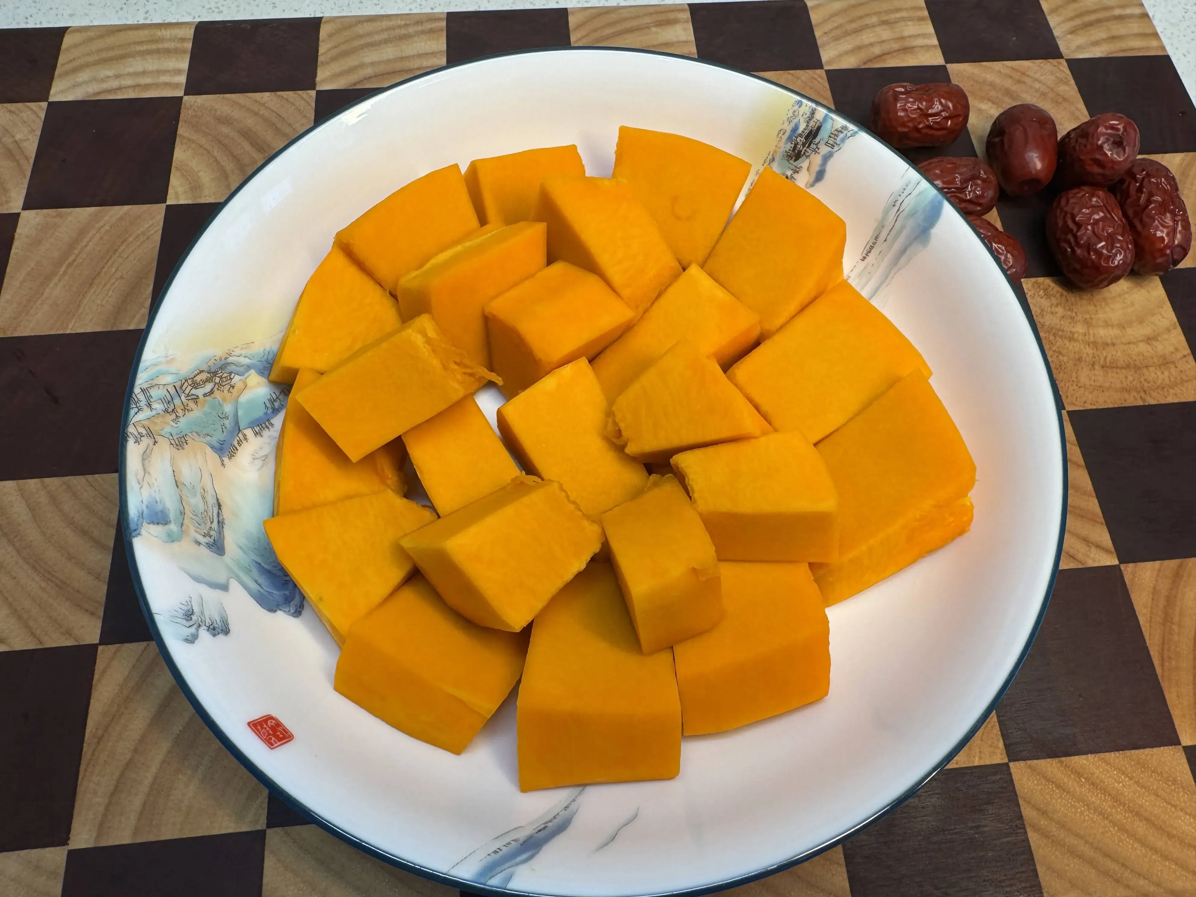 用料:红枣适量,蜂蜜一勺,南瓜一块。