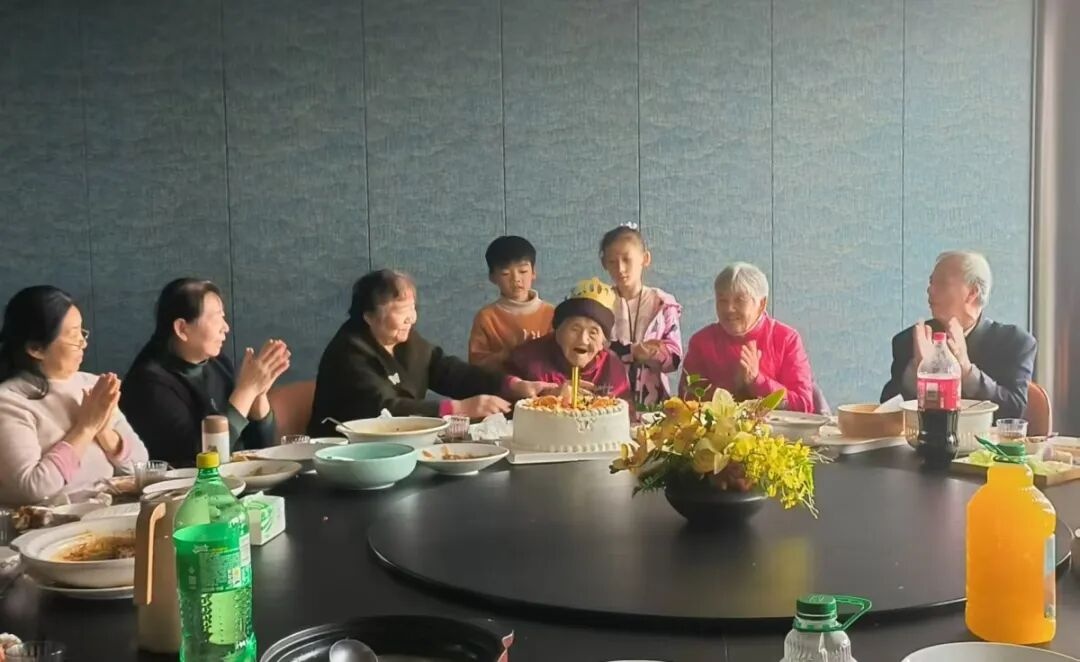 据家人介绍,李陈氏老人的生日是阴历九月初九重阳节。每年重阳节前,五世同堂的一大家人都会齐聚郑州,为老人祝寿,今年也不例外。今年10月26日,家里20多人欢聚一堂,提前给老太太庆祝生日,现场其乐融融,很热闹。