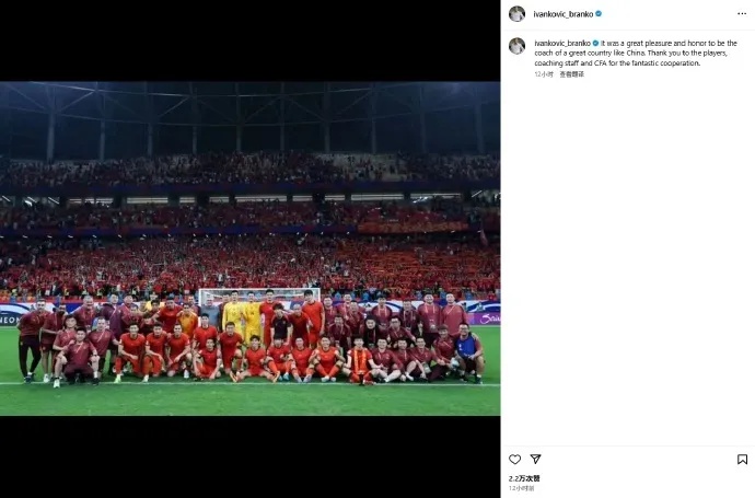 6月26日,据中国足协官博消息:2026美加墨世界杯预选赛亚洲区18强赛已结束,由于中国国家男子足球队未能晋级附加赛阶段比赛,主教练及教练团队的执教合同已根据约定自动终止。经过专家评议小组评议,中国足球协会研究决定,布兰科·伊万科维奇不再担任中国国家男子足球队主教练。