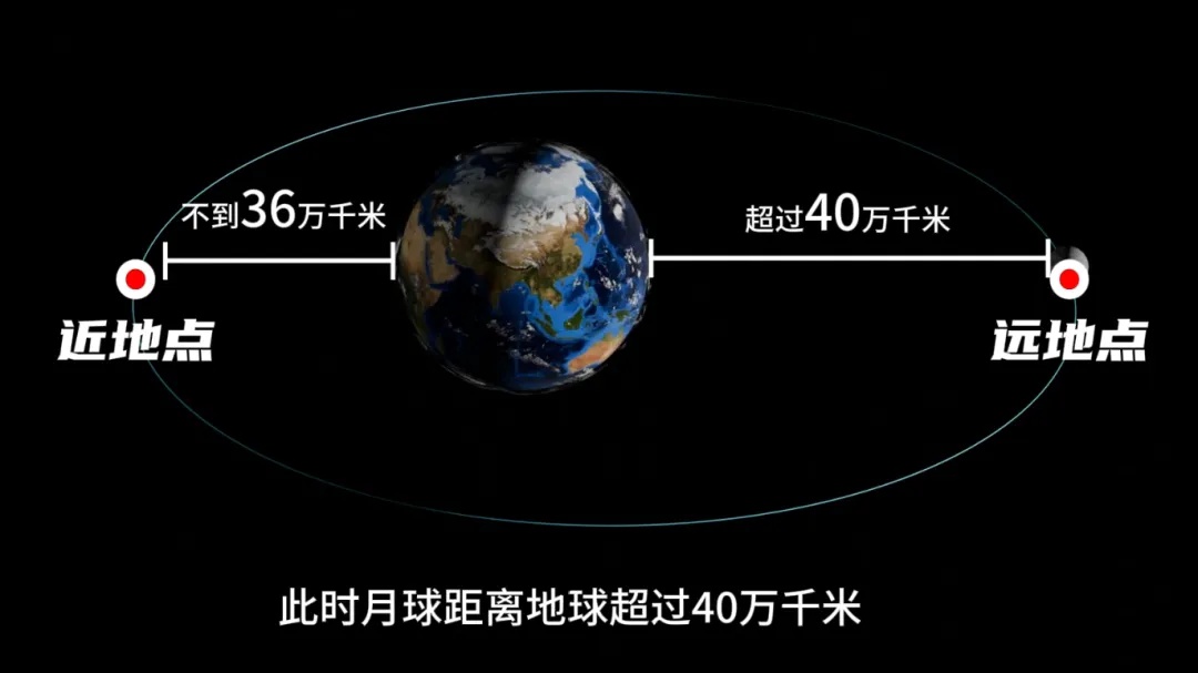 轨道上距离地球最远的那一点称为远地点,此时月球距离地球超过40万千米。