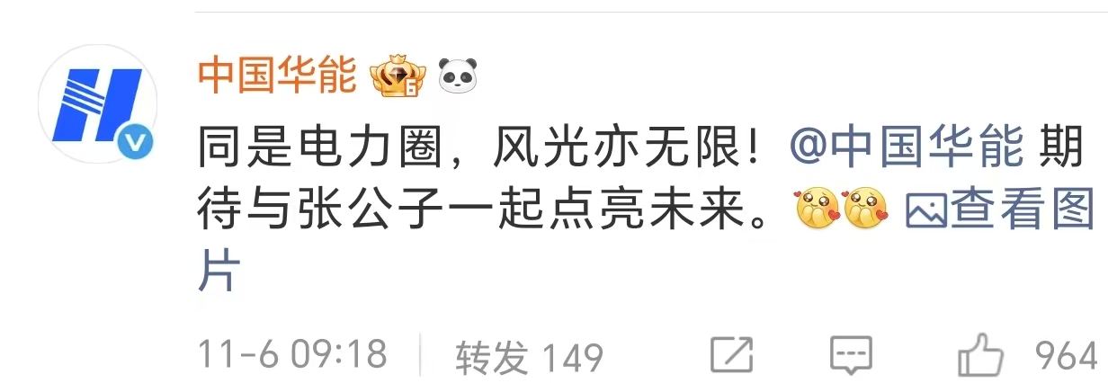 中国华能、中国核电也在评论区邀请张凌赫去前去探访。