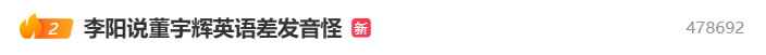 11月14日,话题“李阳说董宇辉英语差发音怪”登上微博热搜榜。